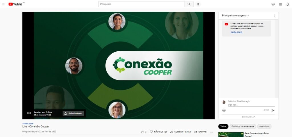 Para participar, basta acessar o Youtube da Rede Cooper ou a plataforma de aprendizagem Unicooper no dia e horário indicados.