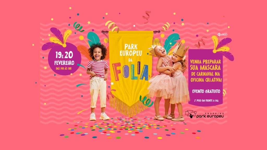O feriado de Carnaval será de muita alegria e diversão para os blumenauenses. Pensando nisso, o Shopping Park Europeu preparou uma programação de esquenta de Carnaval para os baixinhos. Entre os dias 19 e 20 de fevereiro, das 14h às 18 horas, ocorre o Park Europeu da Folia.
