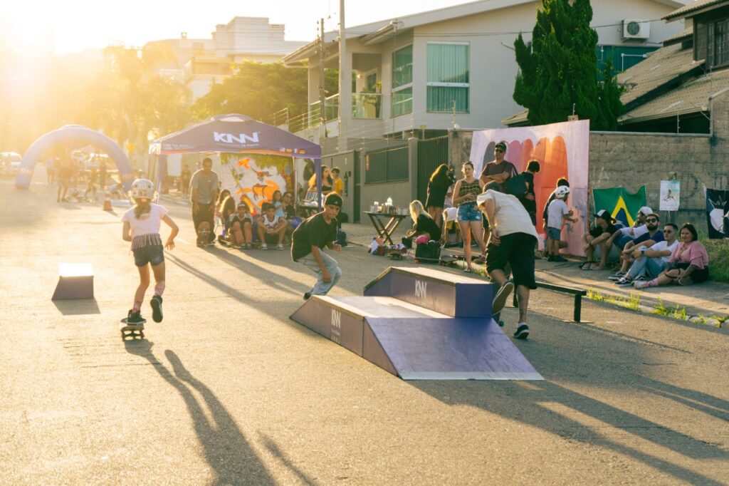 Março, 2022 – A primeira edição do Street Fun, evento promovido pela KNN Balneário Camboriú, escola modelo da franqueadora, reuniu centenas de famílias da região. Foram mais de 400 pessoas que passaram pela Praça dos Amores, em Balneário Camboriú, neste domingo (27). Além de diversas atividades de lazer, como aulas gratuitas de skate, pinturas e brincadeiras, a KNN Idiomas concedeu quatro bolsas de estudos.