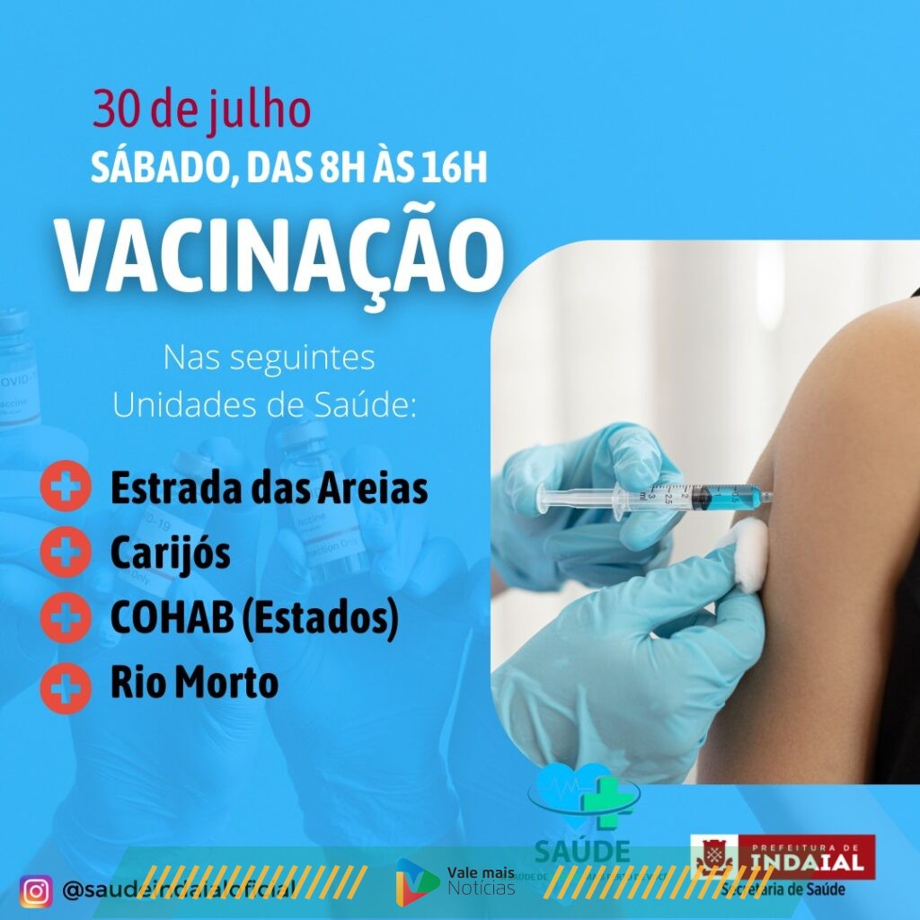 Neste sábado, dia 30 de julho, a Prefeitura de Indaial através da Secretaria de Saúde irá realiar a vacinação contra a gripe, COVID-19 e demais vacinas de rotina das 8h às 16h. Será nas seguintes unidades de saúde: