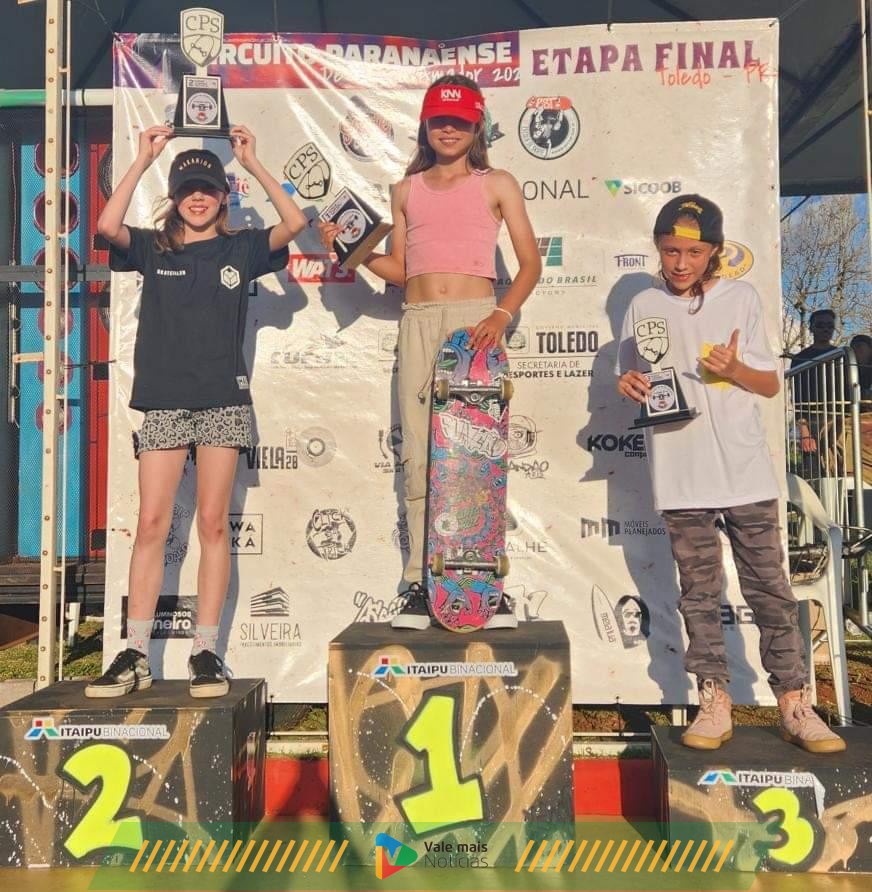 Outubro, 2022 – Neste final de semana a catarinense Bia Godoi, 10 anos, se consagrou a grande campeã do Circuito Paranaense de Skate na categoria iniciante feminino. A última etapa da disputa foi realizada na cidade de Toledo/PR e Bia ficou em primeiro lugar, mesma classificação conquistada nas outras duas etapas do campeonato. Para o mês de novembro, a pequena skatista que tem patrocínio da KNN, já tem dois importantes campeonatos na agenda, a Taça Catarinense e o Campeonato Brasileiro.