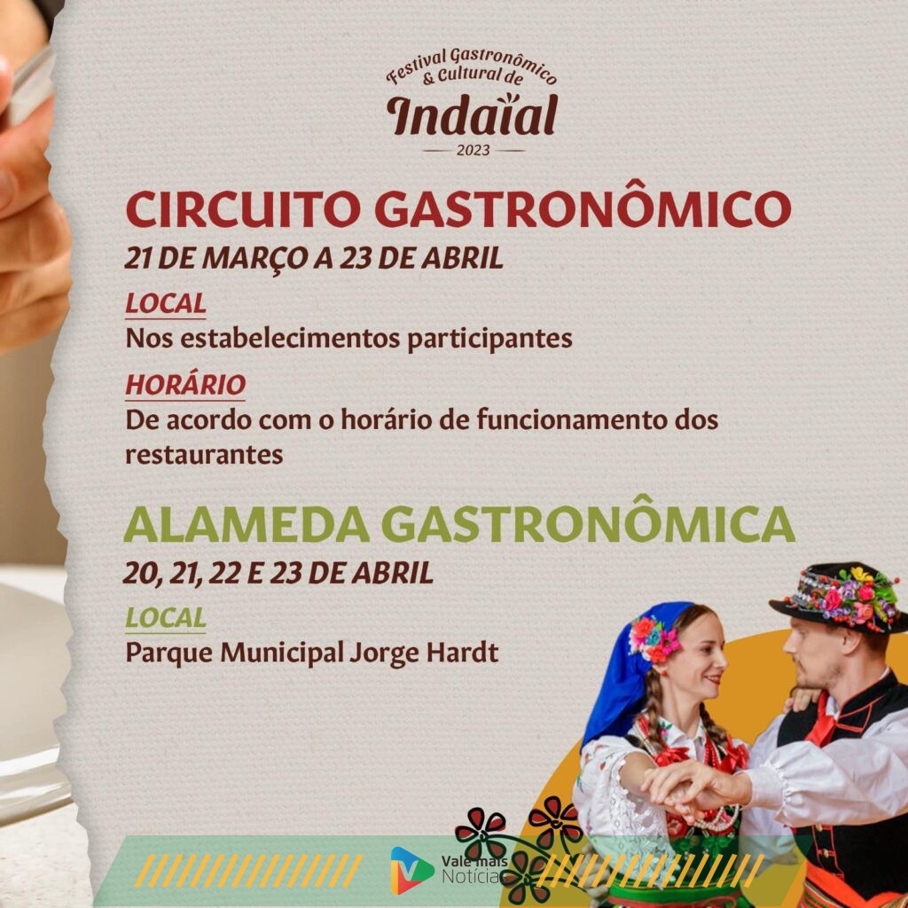 O Circuito Gastronômico em Indaial começa nesta terça-feira (21) e segue até o dia 23 de abril. Neste ano, o evento vem com o tema “Especiarias e temperos Europeus”. Ao todo, serão 11 restaurantes que desenvolveram pratos inéditos. A programação ocorre nas próprias casas.