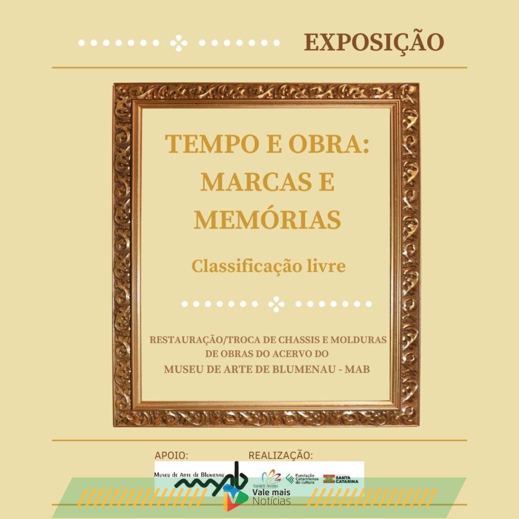 Artes plásticas em destaque. No dia 4 de maio, 28 obras do Museu de Arte de Blumenau (MAB) voltam a ser prestigiadas pelo olhar do público após restauro, troca de chassis e ou molduras. As artes restauradas estarão na mostra Tempo e Obra: Marcas e Memórias, expostas na Sala Elke Hering, no Museu de Arte de Blumenau, durante a 2ª Temporada de Exposições do MAB. A abertura do evento ocorre a partir das 19h, com entrada gratuita a toda comunidade e classificação etária Livre. A mostra segue até dia 21 de junho, de terça-feira a domingo, das 10h às 16h.