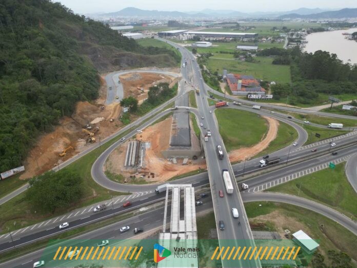 O orçamento histórico também permite que a obra avance em diversas frentes de serviço. Neste momento, estão em construção nove viadutos ao longo do trecho, com destaque para a estrutura do km 7, no entroncamento com a BR-101, e o no km 57, no Badenfurt, no acesso a Pomerode. Além disso, o DNIT está realizando novos mutirões de desapropriação de imóveis, principalmente na região urbanizada de Blumenau, a fim de avançar com a construção em novos segmentos.