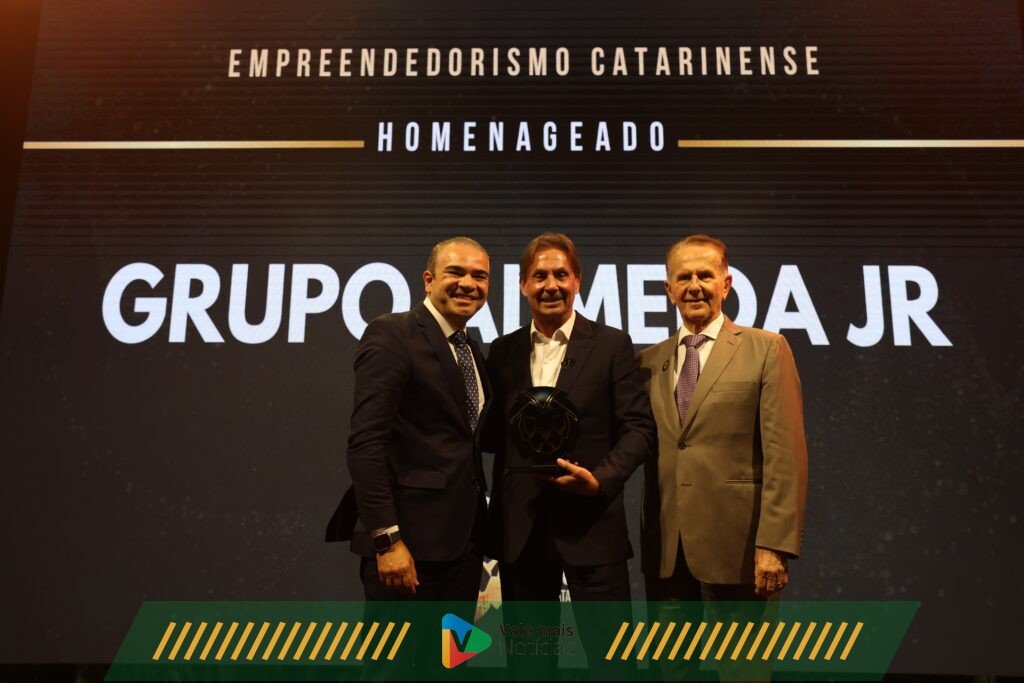 Nesta quarta-feira (8), o Grupo de Líderes Empresariais de Santa Catarina (LIDE-SC) homenageou os vencedores do Prêmio Líderes 2023. O empresário Jaimes Almeida Junior recebeu a homenagem especial com a distinção de Empreendedorismo Catarinense. A Almeida Junior é a maior empresa de shopping centers do Sul do Brasil, com seis grandes shoppings em Santa Catarina, e detém 71% do market share do Estado.