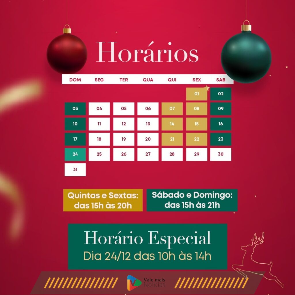 O espaço funcionará com horário estendido na semana que antecede a véspera de Natal