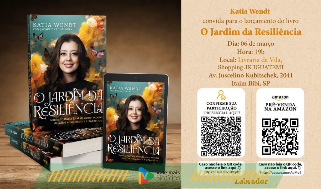 Esse é um trecho inicial que resume a essência do livro ‘O Jardim da Resiliência’ de Katia Wendt, uma executiva de multinacional que teve que superar sozinha uma infância sofrida e sem recursos. A obra, que conta com distribuição física e digital da editora Labrador, será lançada no próximo dia 06 de março, às 19h, na Livraria da Vila do shopping JK Iguatemi.