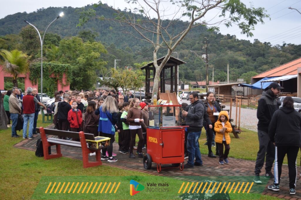 Durante a inauguração, um pipoqueiro distribuiu pipoca para os presentes, acrescentando um toque nostálgico ao evento. A praça complementa a já popular “Lagoa dos Patos”, situada na entrada da escola Cetisa, e promete se tornar uma nova atração na região que já reunia visitantes aos finais de semana.