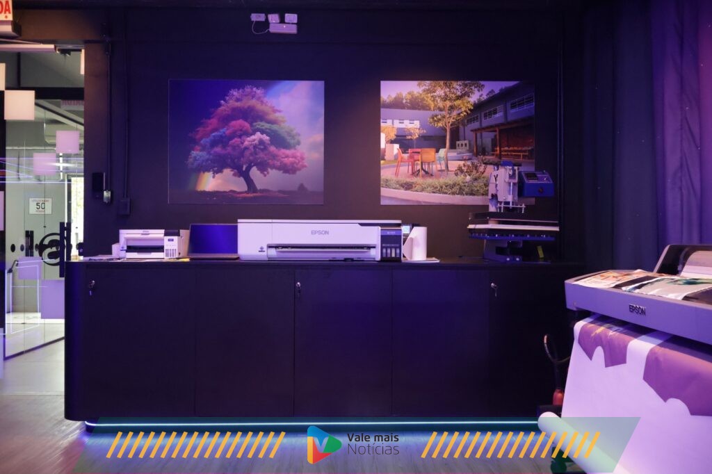 Ambiente de 96 metros quadrados foi criado pela Pauta Distribuição, que representa no estado a Epson, uma das maiores marcas globais de soluções em impressão. Local foi concebido para receber clientes que buscam ampliar a produção têxtil e podem ver, na prática, como novas soluções funcionam