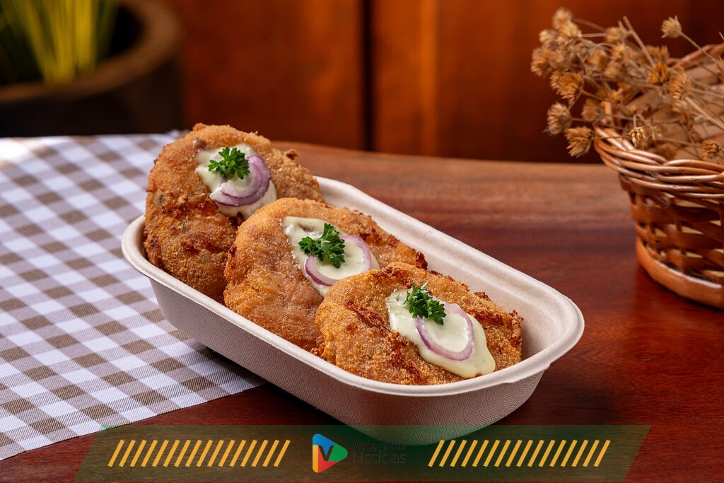 Alfred Gastrobar – Bocadito de Aipim com Linguiça. É uma massa de aipim com linguiça empanada à romana na farinha de mandioca com parmesão. A crosta crocante encontra a maionese de abacaxi defumado e o picles de cebola roxa, criando camadas de contraste entre doçura, acidez e leve defumação. Valor: R$ 22, serve uma pessoa. Outros pratos: Pirulito de torresmo, por R$ 26; e mini churros com açúcar e canela, regado com calda de chocolate meio amargo (5 unid) por R$ 22.