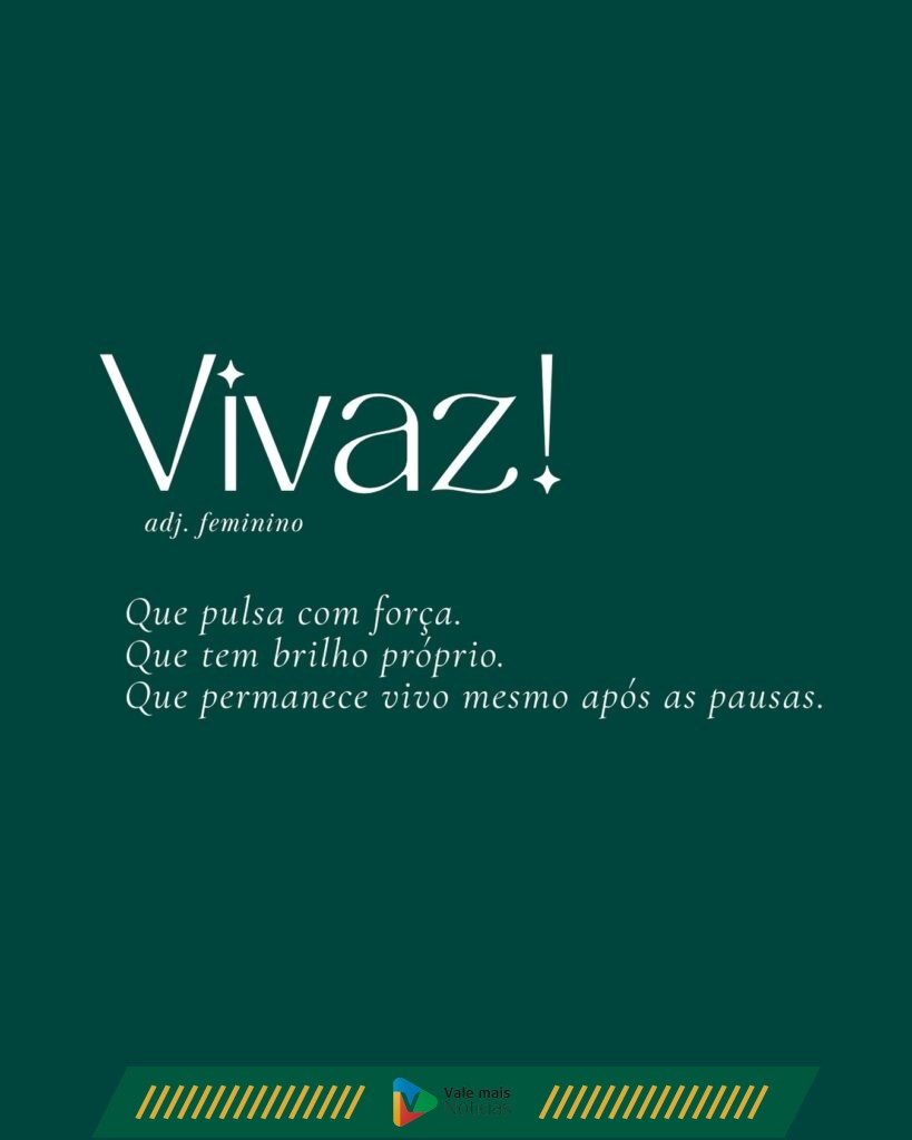 O nome “Vivaz!” foi escolhido por representar tudo aquilo que pulsa, que tem brilho nos olhos, que não vive pela metade. Uma palavra que traduz o desejo de mulheres que querem estar mais conectadas com quem são — além dos papéis e das cobranças do dia a dia.