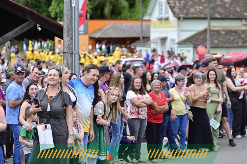 No sábado (8/11), o Desfile Alegórico coloriu a principal via da cidade, reunindo cerca de cinco mil espectadores, outro número histórico registrado na Festa das Tradições. O público lotou os dois lados da avenida para acompanhar de perto as alegorias preparadas pelas mais de três mil pessoas que desfilaram.