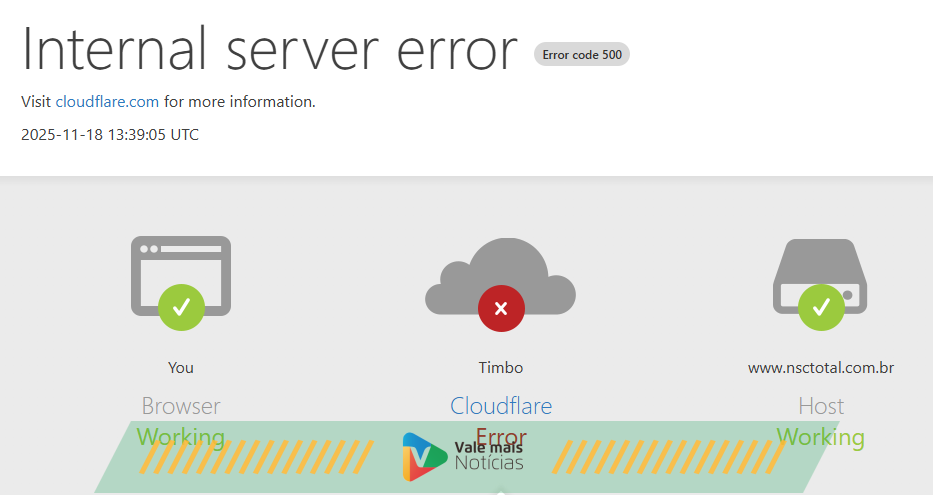 A plataforma Cloudflare apresenta instabilidade na manhã desta terça-feira (18). De acordo com relatos de usuários no site Downdetector, os problemas começaram por volta das 8h e afetam outros sites e aplicativos, como o X (antigo Twitter), o Canva e a Open AI.